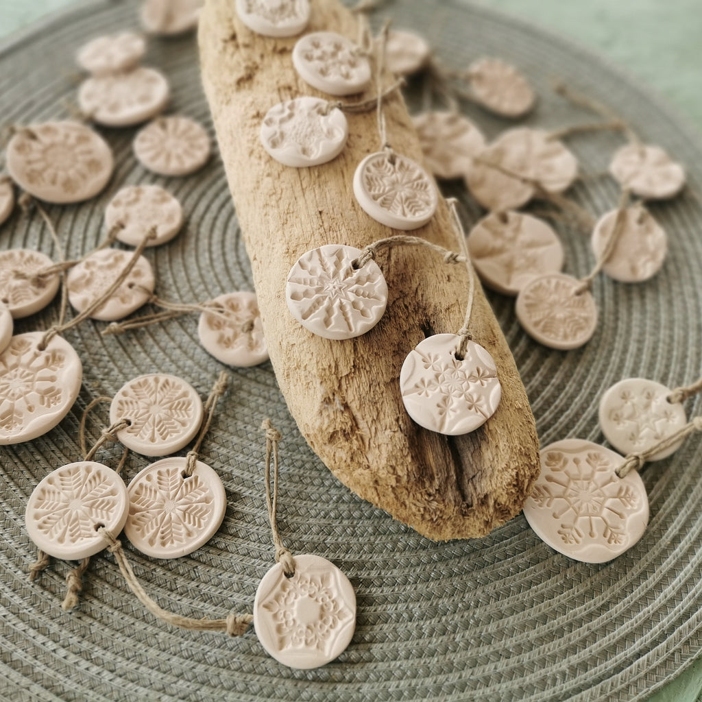 HÓPEHELY mintás kerámia dísz organza zsákban - 12 db
